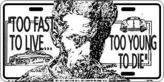 This (JAMES DEAN TOO FAST TO LIVE) embossed metal license plate is new in shrink wrap. The size of this auto tag (number plate) is 6 X 12 inch. Collect all the Cruising Daytona license plates.